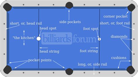 Pool Head String . Compare the head string, an imaginary line connecting the two diamonds that are second from the head rail (see table diagram, pg. Dimulai dari head rail (sisi pendek meja sebelah kiri), plus dua diamond.